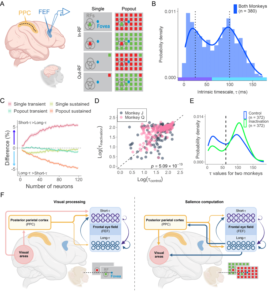 1-Parietal control of prefrontal neural timescales shapes visual salience.